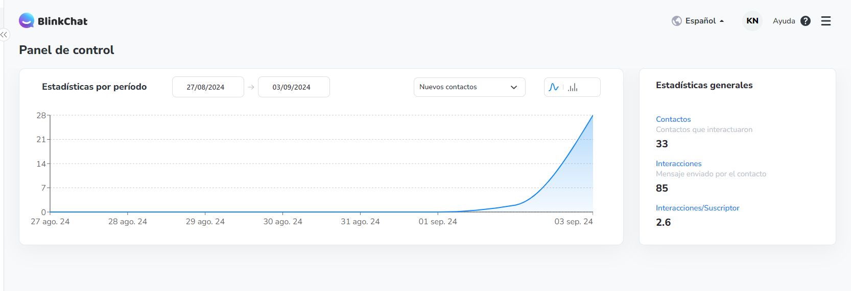 El Panel de Control es el área central donde podrá acceder a información general y métricas de su empresa. También es esencial para monitorear el desempeño de su negocio y evaluar el impacto de las interacciones con los clientes. Esto es lo que puede encontrar en el Panel de control: